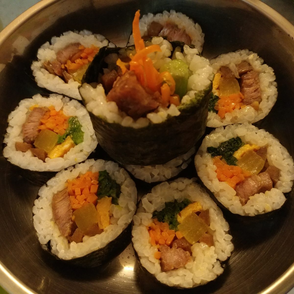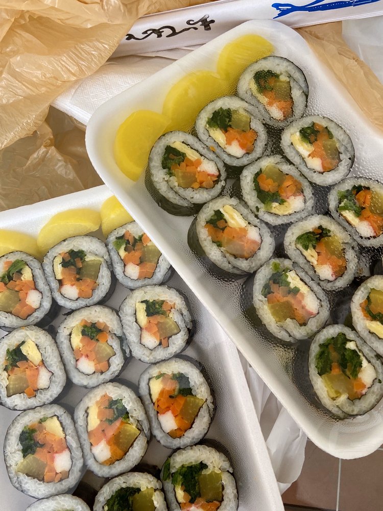 Kimbap is a Korean sushi roll packed with rice lightly seasoned with salt and a hint of sesame oil wrapped in nori dried seaweed and tricked up. Large orders can take more time but we always hit our deadlines. Kimbap Paradise for all K-Food Fans.